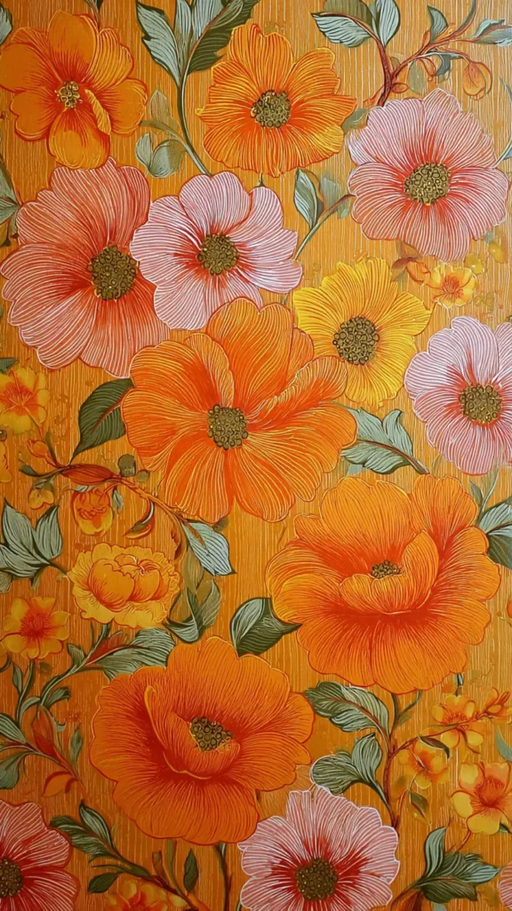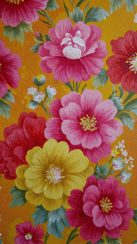 1970s wallpaper often featured floral prints, geometric patterns, and textured designs like grasscloth. These bold wallpapers added depth and personality to every room.