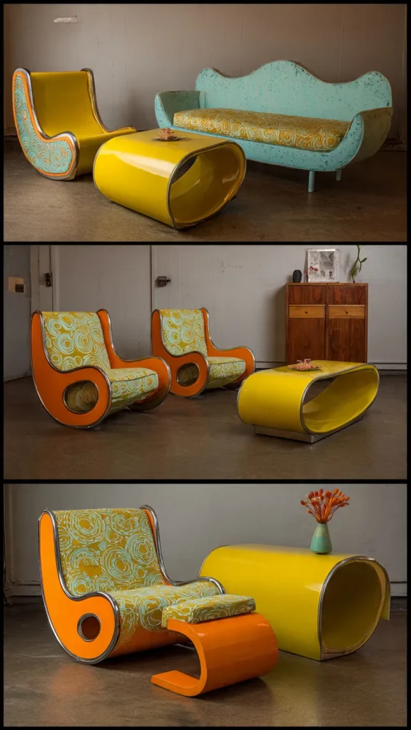 In the 70s, furniture wasn’t just functional — it was fun. Funky retro furniture is making a comeback with playful shapes, bold upholstery, and sculptural forms.