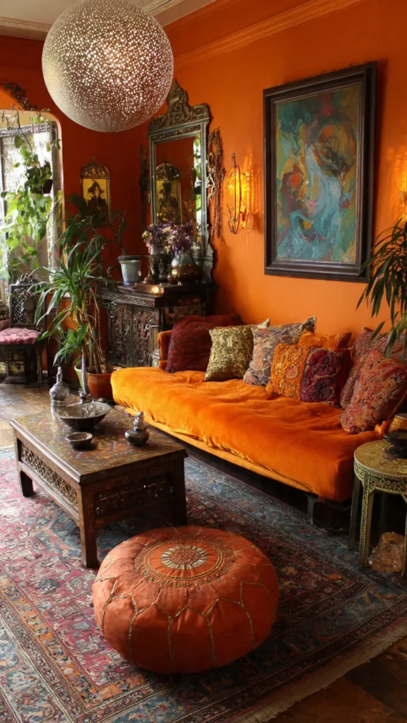 • Use floor cushions and low wooden tables for a relaxed, free-spirited vibe.