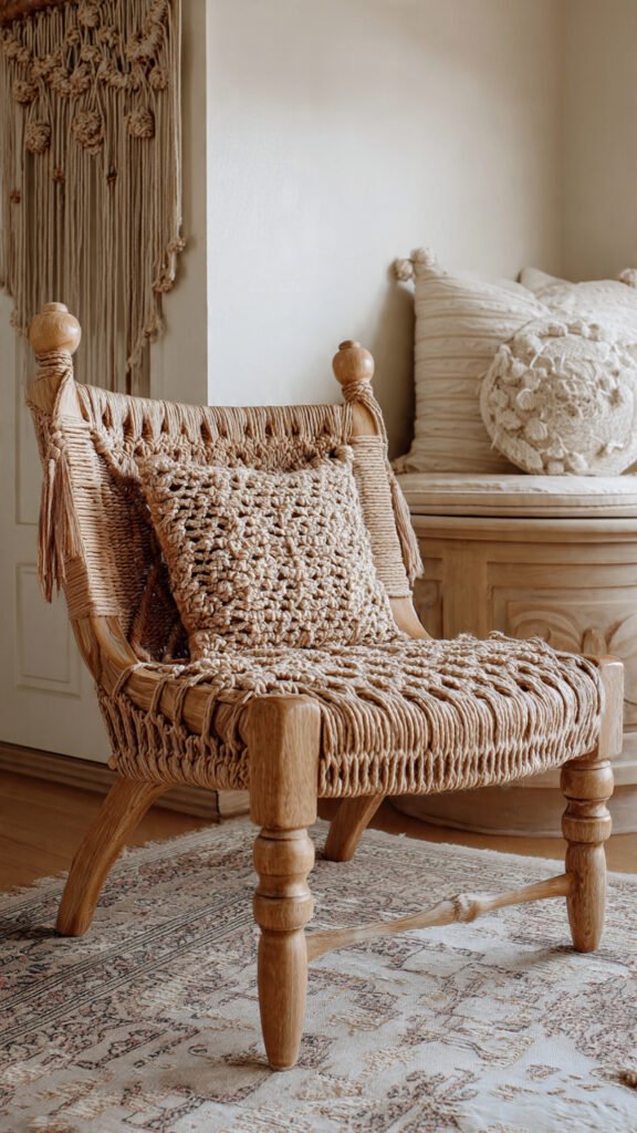 Bohemian woven chairs are perfect for adding texture, warmth, and an eclectic vibe to living rooms. They often feature natural materials like rattan, wicker, or handwoven fibers.