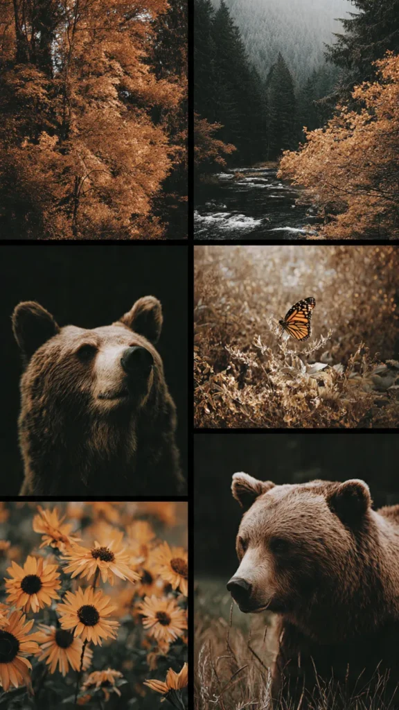 Brown-toned aesthetic bear wallpapers are trending for their cozy, cottage-core vibe. They blend nature’s warmth with cuteness, giving your phone or laptop background a calming, earthy aesthetic. Pairing multiple shades of mocha, beige, and tan in a collage creates visual harmony that feels both rustic and modern.