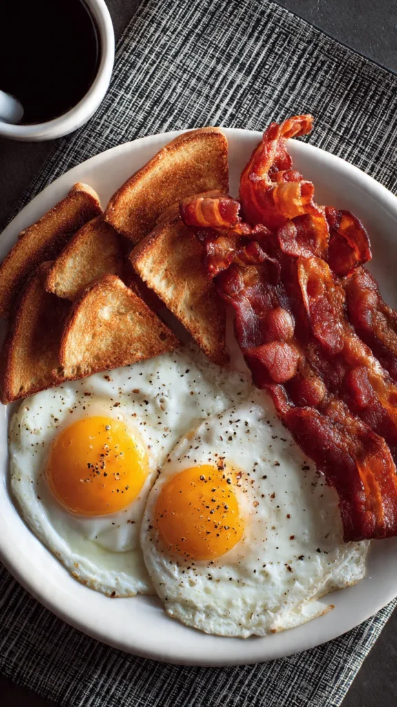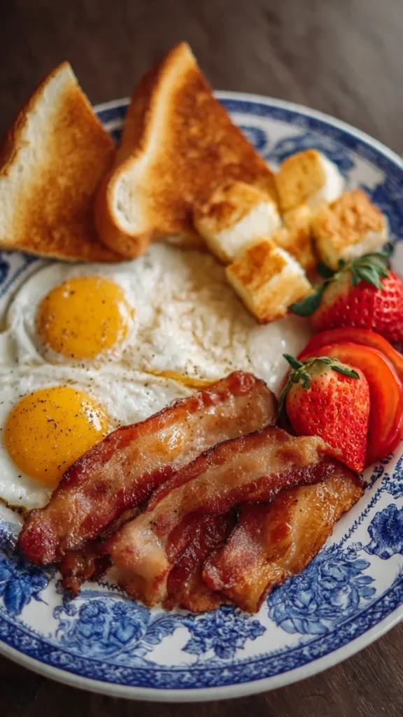 A classic American breakfast is warm, filling, and includes a balanced mix of protein, carbs, and healthy fats. Traditional plates often feature eggs, bacon or sausage, toast, and a side of fruit or hash browns.