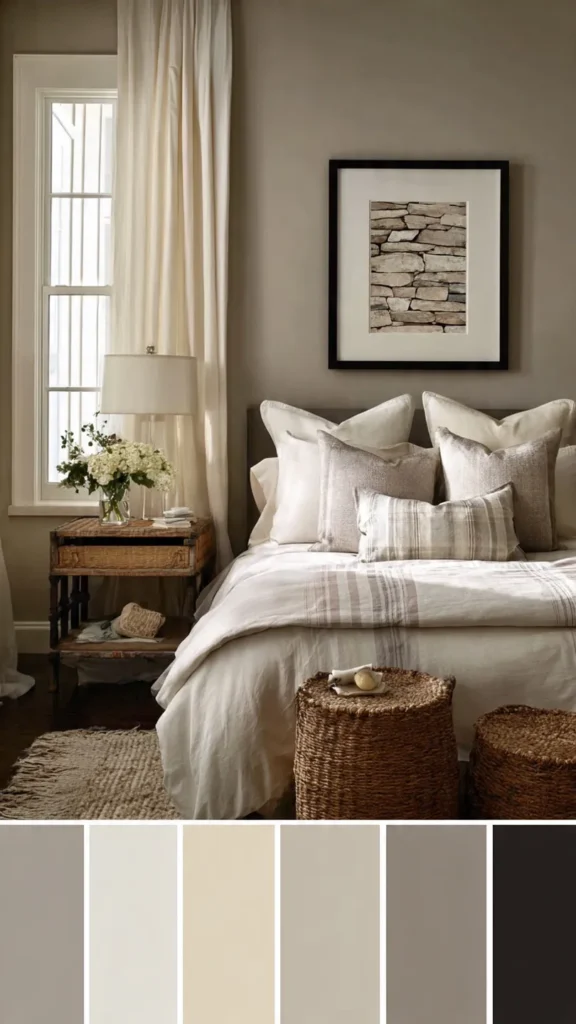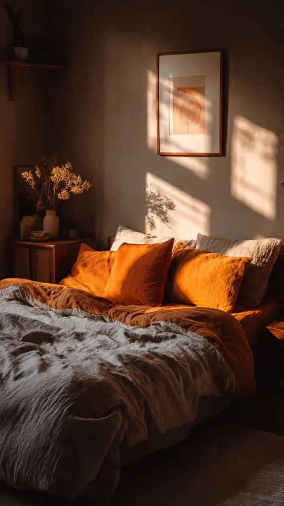 - Stick to a neutral base (white or cream walls) and add one warm accent color like rust, taupe, or sage green.