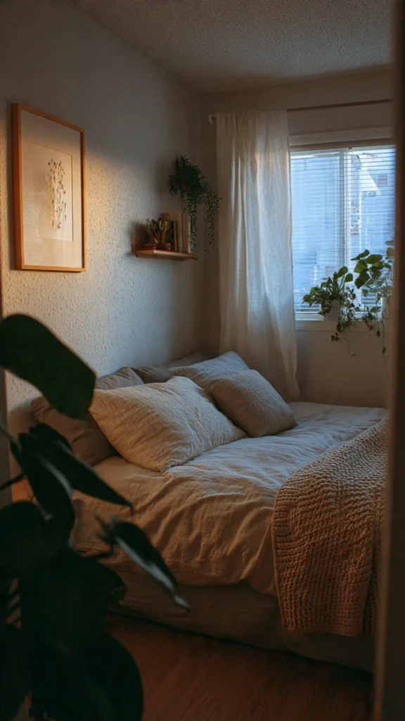 - Keep textures soft — use linen bedding, cotton curtains, and cozy rugs.
