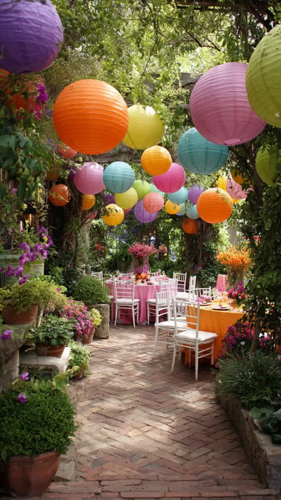 A balloon arch entrance is one of the most eye-catching birthday garden decorations and instantly sets the mood for the party. It creates a welcoming focal point that guests notice the moment they arrive.