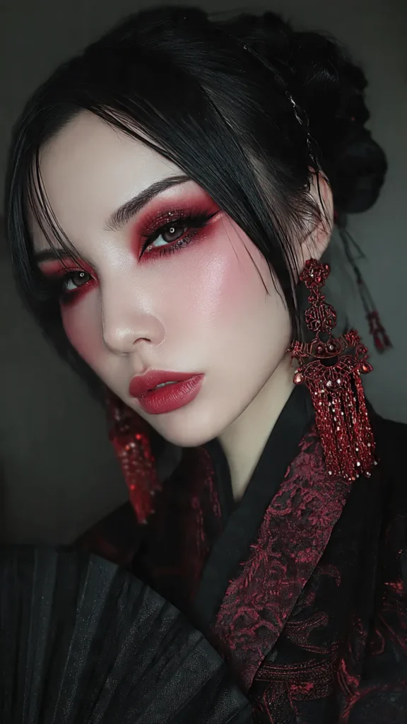 - Glam Chinese Makeup Look: Adds a bit of shimmer on the eyes, bolder gradient lips, and slightly more defined eyeliner—still elegant but more suitable for events.