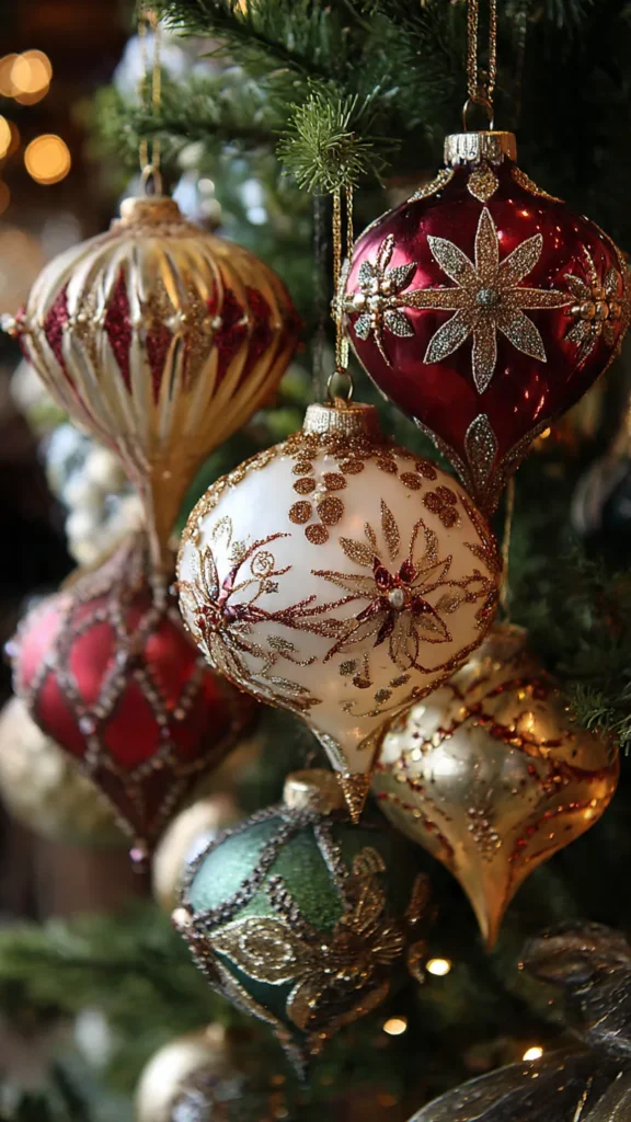 - Themed ornaments: candy canes, snowmen, stars, gingerbread
