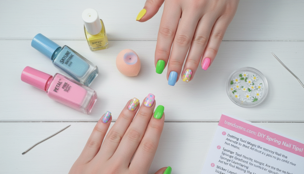 - Dotting Tool Magic: Use the end of a bobby pin to create perfect “Polka Dot” spring nails.