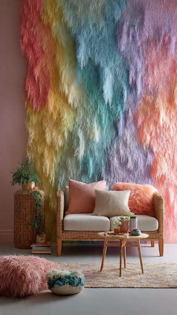 • Bold textures and colors: Layered textures, vibrant accents, and patterned walls