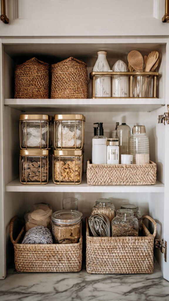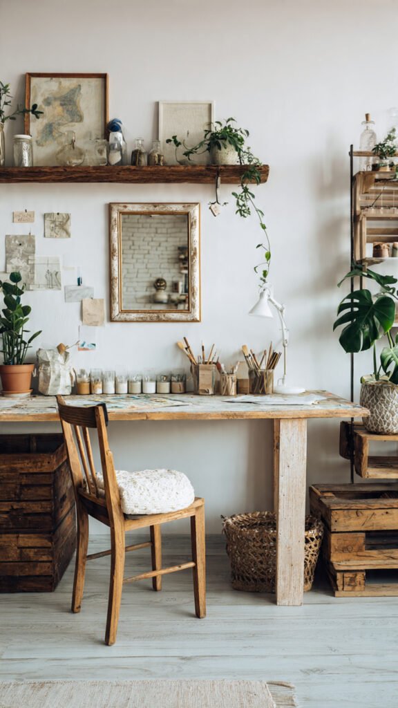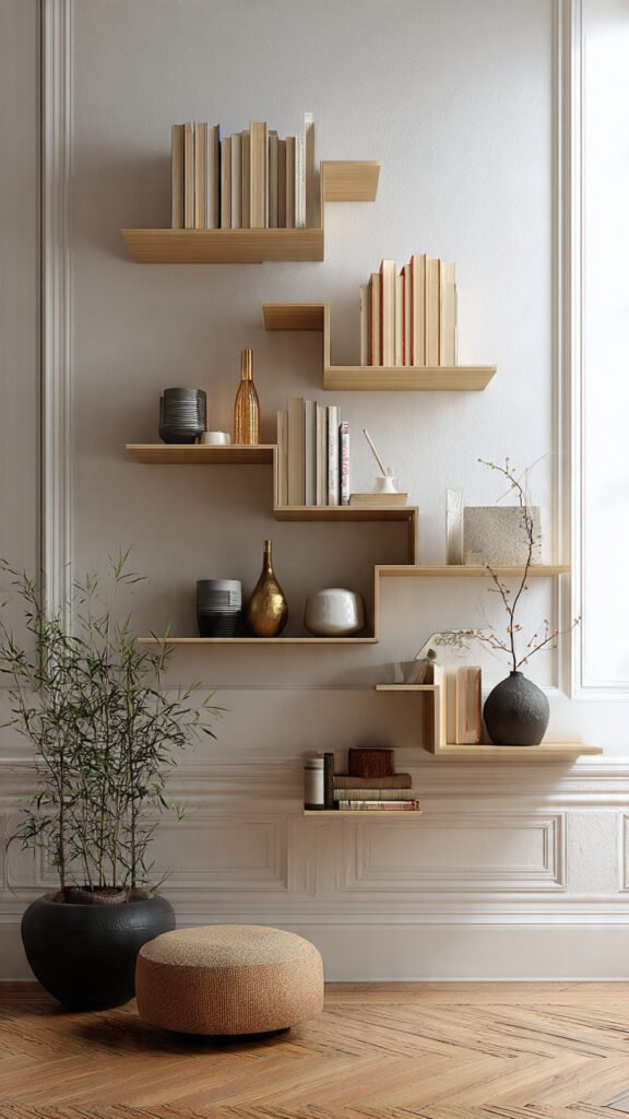 Install small floating shelves to display plants, books, candles, and decorative items. Wooden planks and simple brackets can be turned into functional and stylish storage solutions.