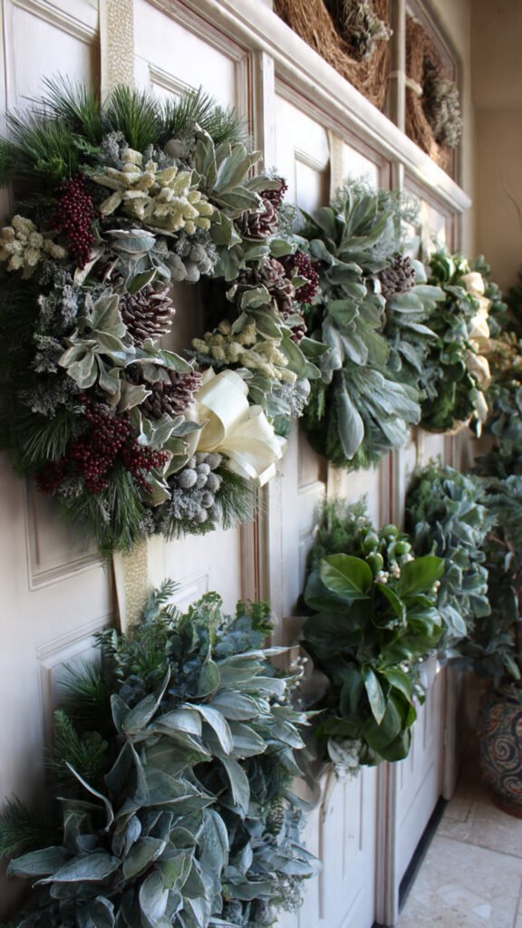 Create wreaths using artificial flowers, ribbons, and natural branches for doors and walls.