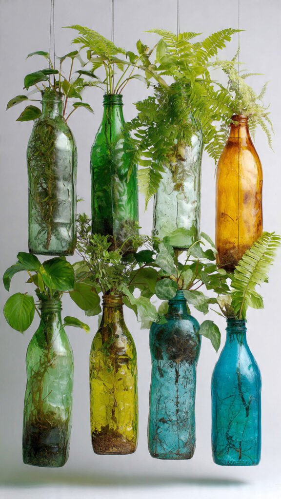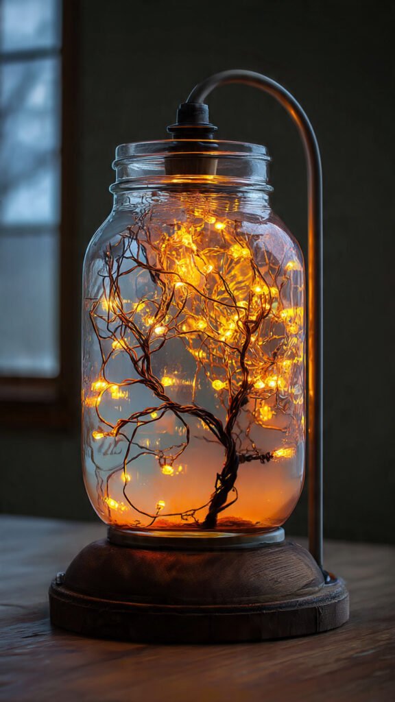 Turn glass jars into hanging lamps or table lights by adding fairy lights or LED bulbs. These work well in bedrooms, balconies, and living rooms.