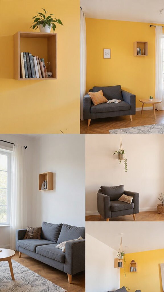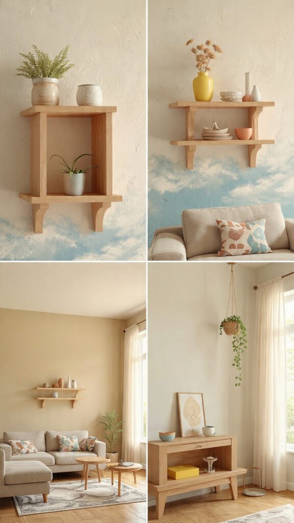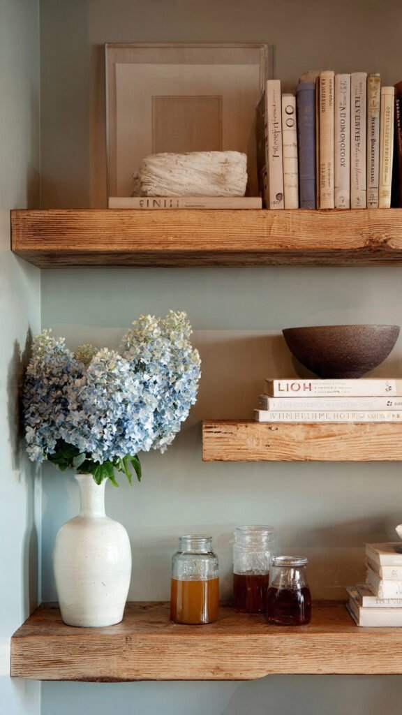 - Install floating shelves