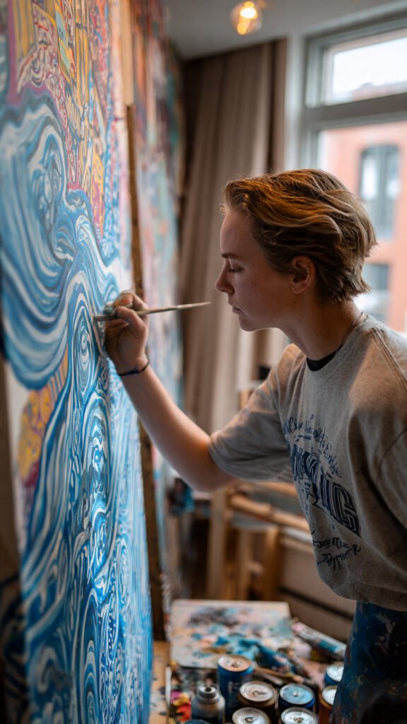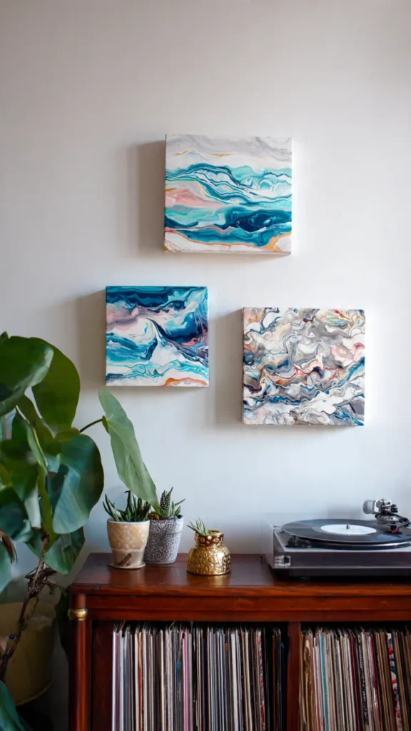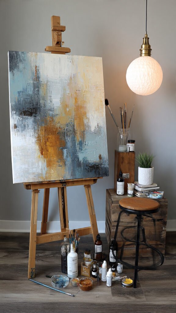 Abstract canvas painting is one of the most popular DIY unique artwork ideas because it allows complete creative freedom. There are no rules, making it perfect for beginners and experienced artists alike.