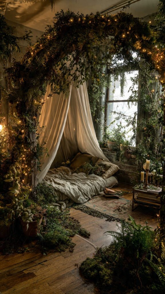 Canopy beds look stunning in forest themes.