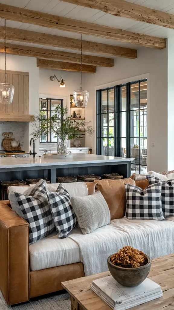 Modern farmhouse décor works well in kitchens, living rooms, and bedrooms. Simple changes like adding a neutral throw blanket, woven rug, or wood-and-metal coffee table can shift the entire mood of your space. The secret is to keep things simple, uncluttered, and intentional.