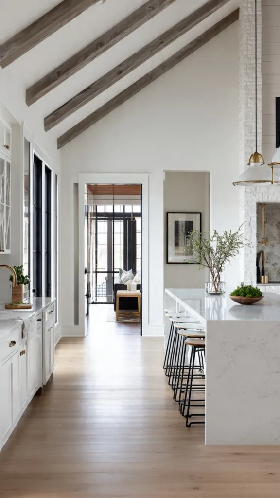 - Wooden beams, stone walls, or metal accents