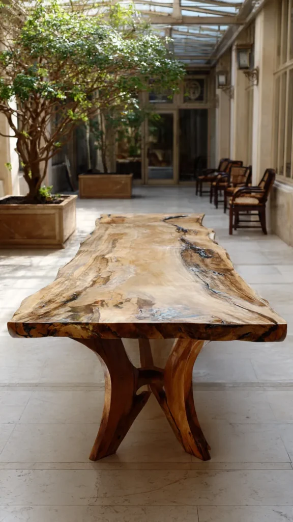 A farmhouse dining table typically features natural materials, a strong wooden structure, and an inviting look. What makes it special?