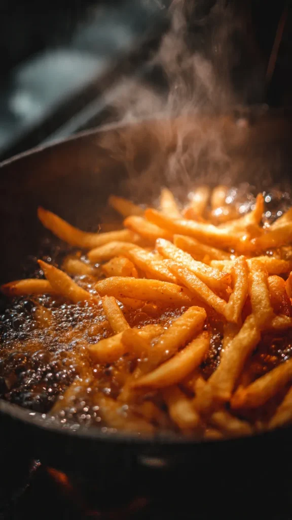 The first fry cooks the potato interior, while the second fry at a higher temperature makes the exterior golden and crispy. - What temperature should I heat the oil?