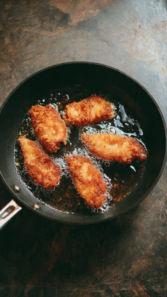 - Carefully lower into hot oil and fry for 4–6 minutes until golden and cooked through.