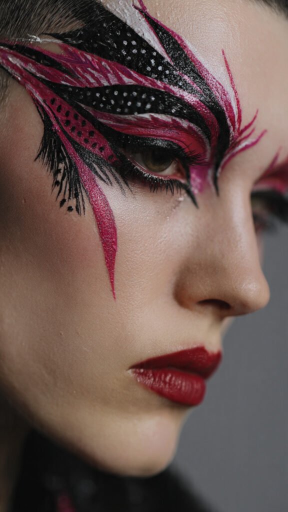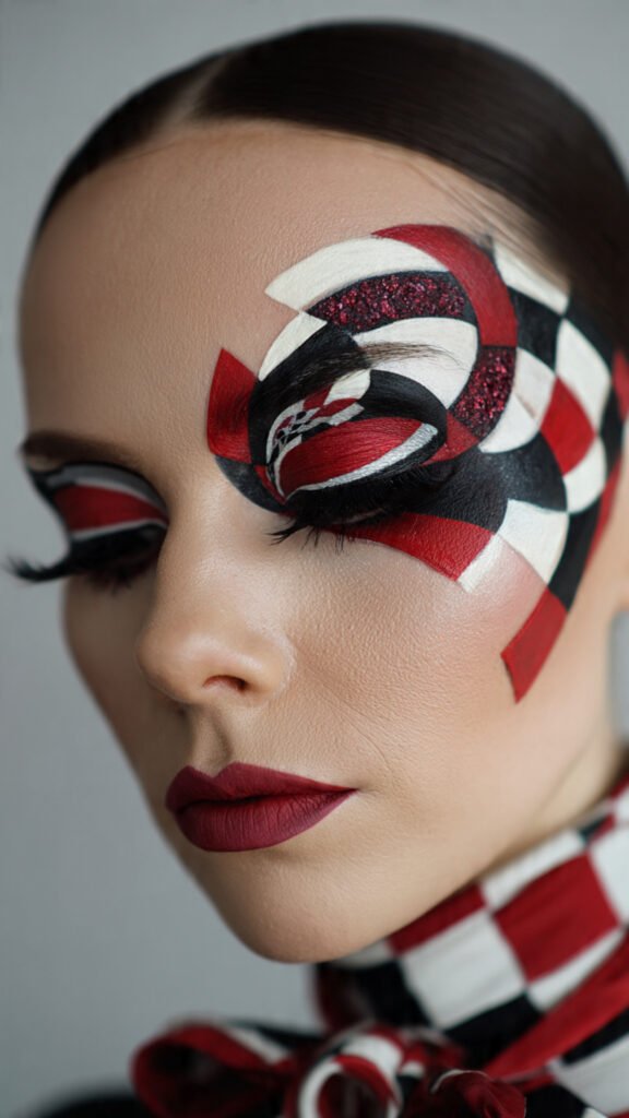 Bold graphic makeup focuses on clean lines, shapes, and artistic designs. It’s modern, creative, and very trendy.