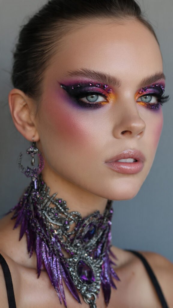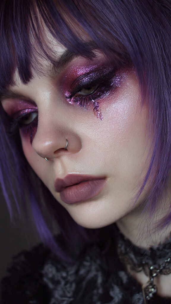 Glitchy Glam Makeup is perfect for parties, festivals, concerts, photoshoots, cosplay, Halloween, and social media content where bold and creative looks stand out.