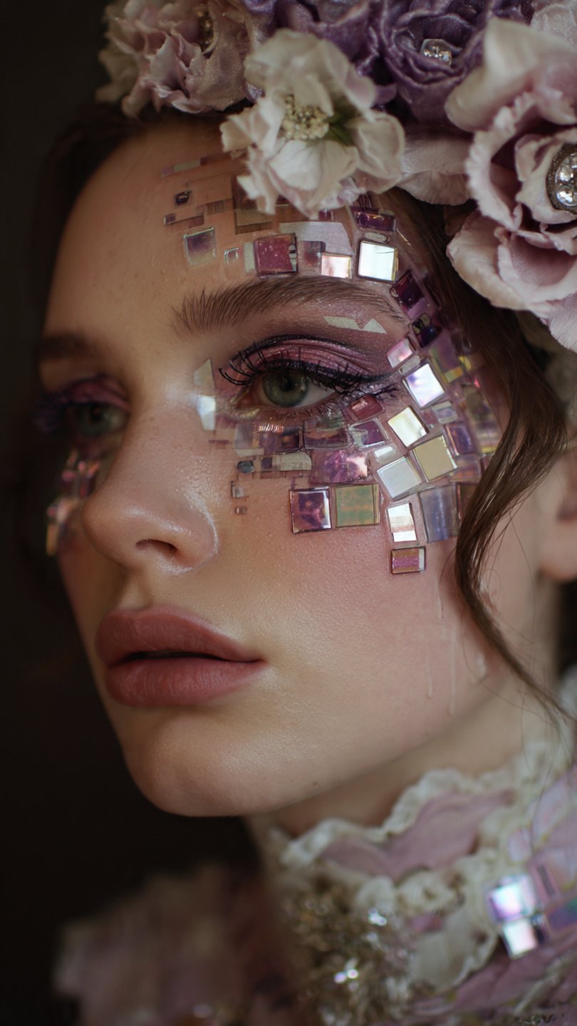 Glitchy Glam Makeup is a modern beauty trend that combines glamorous makeup with digital glitch effects, metallic finishes, holographic shine, and bold graphic designs to create a futuristic and edgy look.
