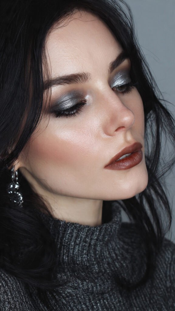 For example, you can pair silver eyeshadow with glossy lips or add metallic eyeliner wings for a high-tech vibe.