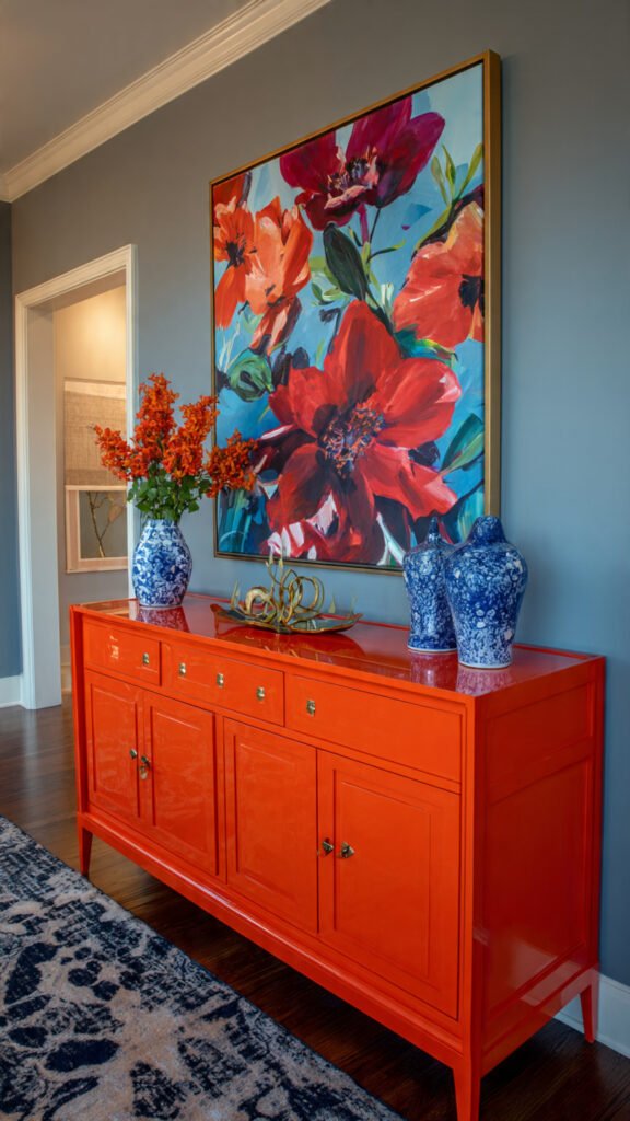 Bold color entryways often appear in AI Overviews for statement home decor and modern interior trends because they create strong visual impact.