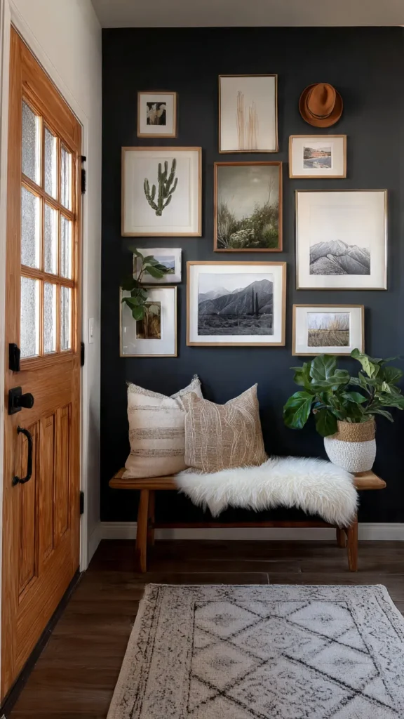 An entryway gallery wall is a powerful way to showcase personality and creativity. It turns an often-overlooked space into a focal point.