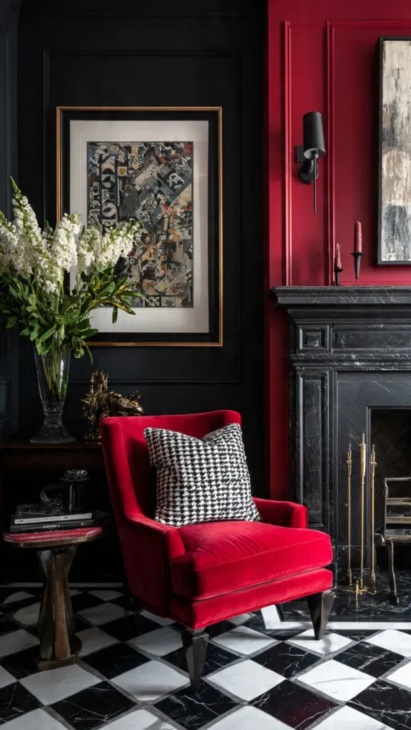 Contrast helps define the space and draw attention to key features such as mirrors, consoles, or artwork.