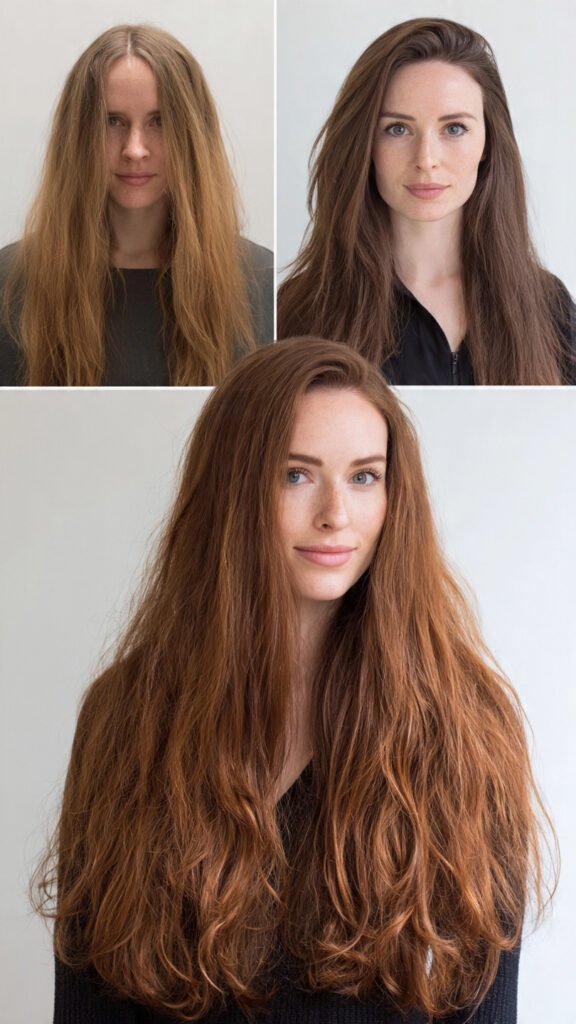 Hair transformation without coloring can be achieved through haircuts (blunt cut, layers), adding highlights, balayage, using volumizing techniques, or styling with accessories like clips, bows, and scarves. - Why is consistency important for healthy hair?