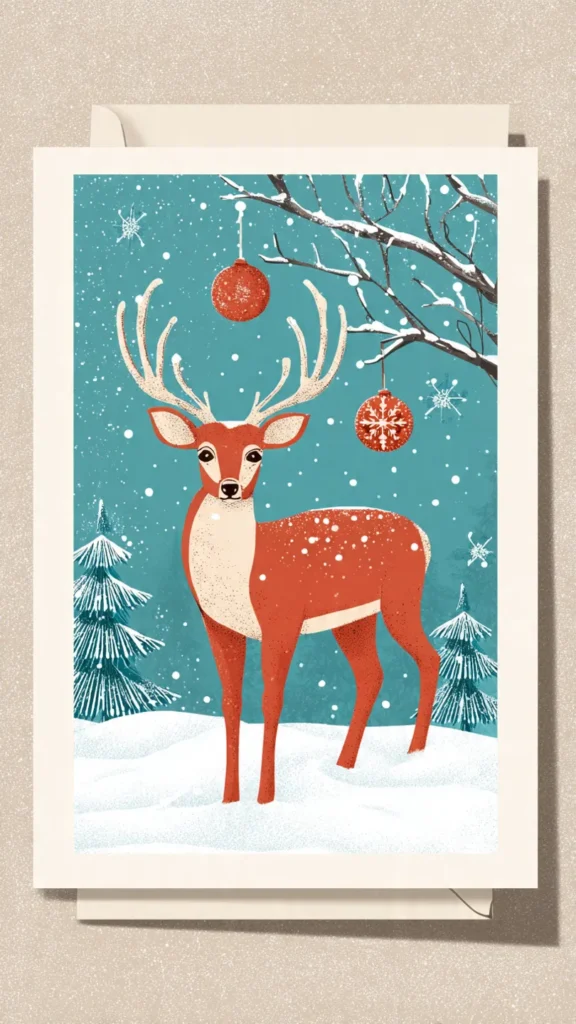 Minimalist Christmas Cards also perform extremely well because they’re easy to make, easy to print, and universally appealing. Think Scandinavian-style: calm tones, small illustrations, and simple typography.