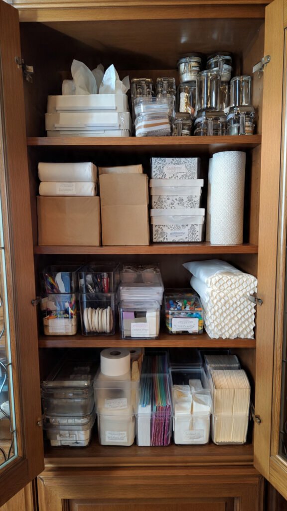 Keep bottles organized by color or height. It creates a visual “designer” look instantly.
