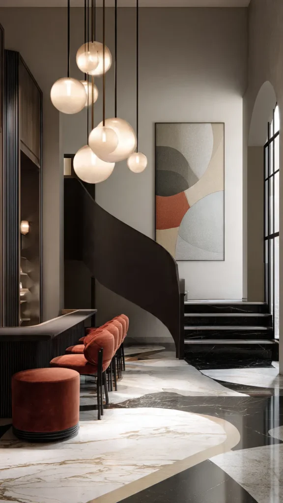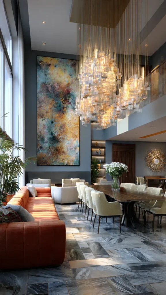 Focus on open layouts, matte finishes, and smart home integration. Furniture should have clean lines, but don’t shy away from bold statement pieces.