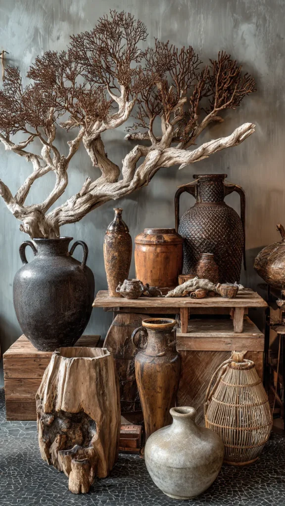 - Clay vases, bamboo lamps, or terracotta pots for authenticity