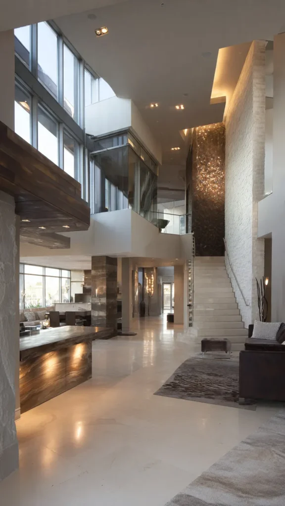 - Artful architecture: Geometric shapes, open staircases, and floating structures.