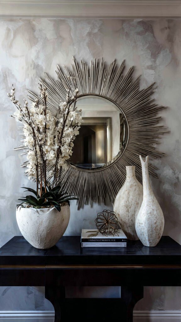 Style a mirror by placing a console table underneath, adding minimal decorative pieces like vases or candles, keeping symmetry balanced, and ensuring the reflected area remains uncluttered. - Do mirrors really make a room look bigger?