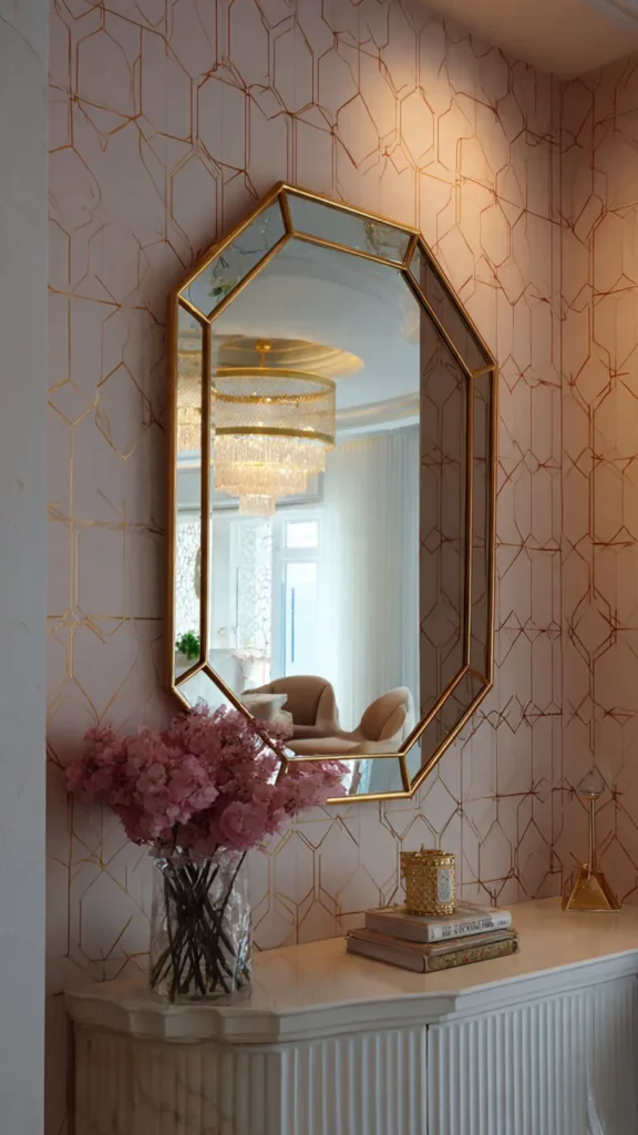 Aesthetic mirror wall decor focuses on harmony, mood, and visual balance. This style is especially popular in bedrooms, vanity areas, and creative spaces where ambiance matters.