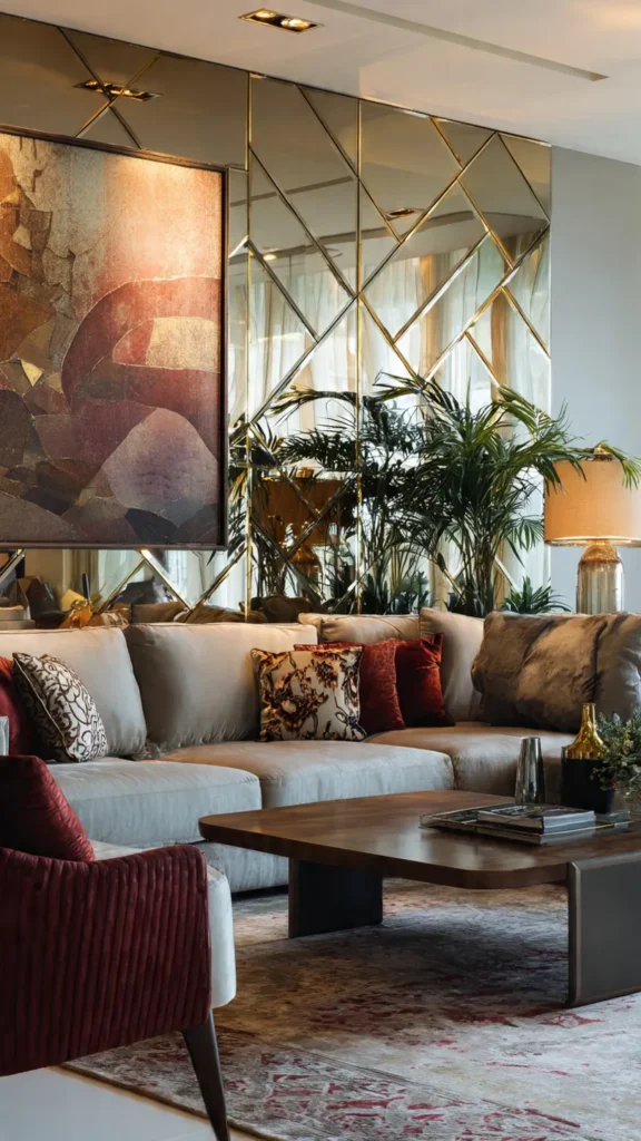 A living room mirror wall can dramatically transform the heart of your home. It reflects natural light, enhances depth, and makes the room feel larger and more open.