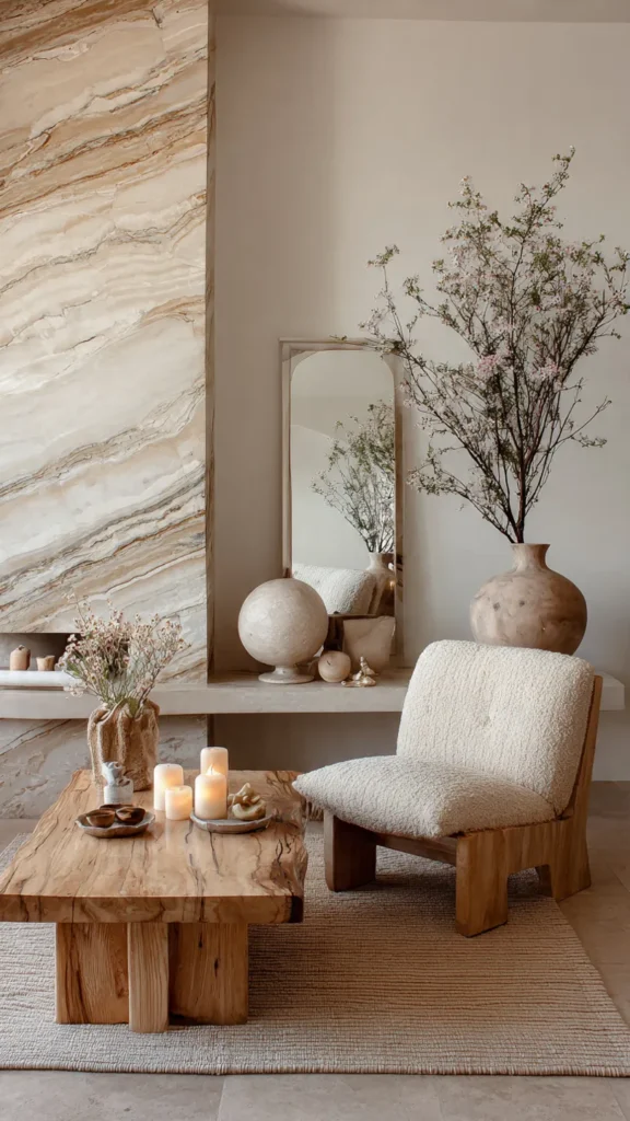 Natural texture interiors bring warmth and balance to modern homes. When you combine minimalist layouts with earthy materials, you create a harmonious vibe rooted in nature — perfect for modern comfort.