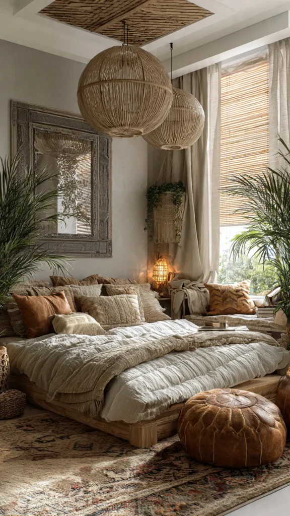 7. What defines a boho chic living bedroom?