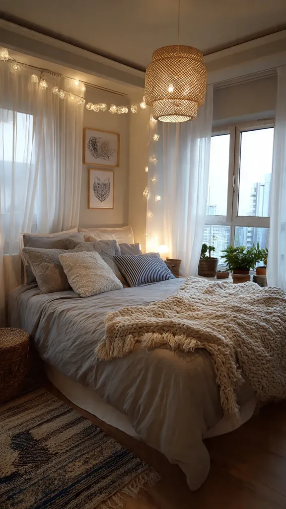 • Soft lighting: Use floor lamps, fairy lights, or sconces for warmth.
