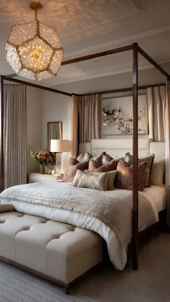 A luxury master bedroom emphasizes opulence, high-end finishes, and indulgent comfort. Luxury design creates a spa-like retreat that combines elegance with functionality.