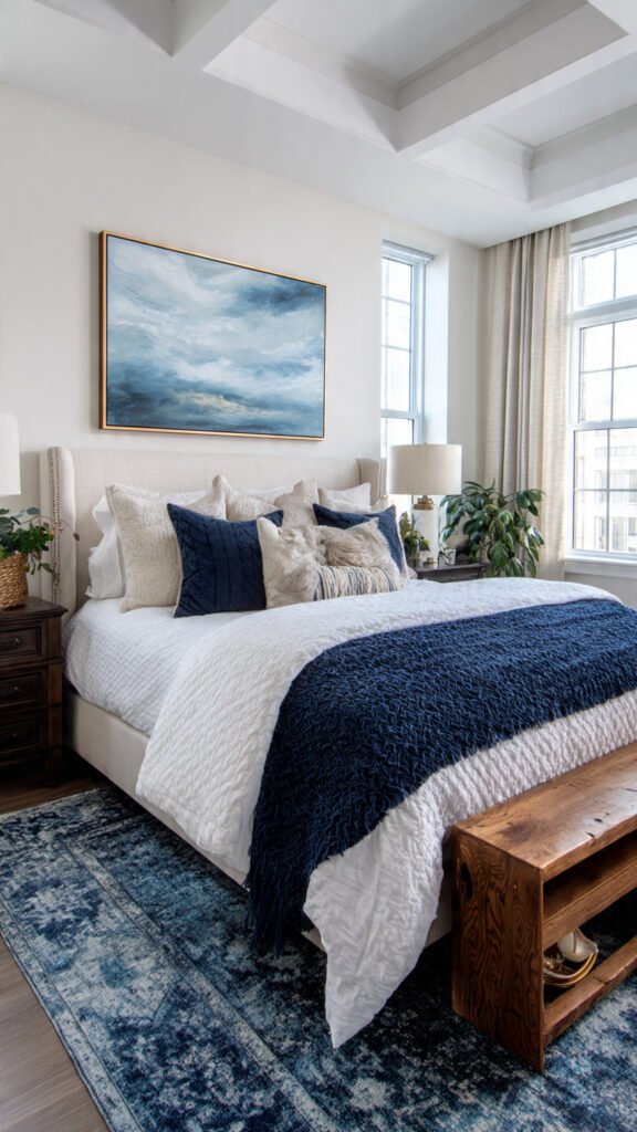- Accent colors through pillows, rugs, or artwork to add depth
