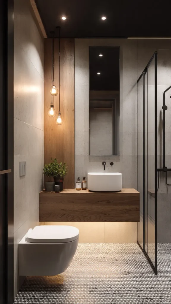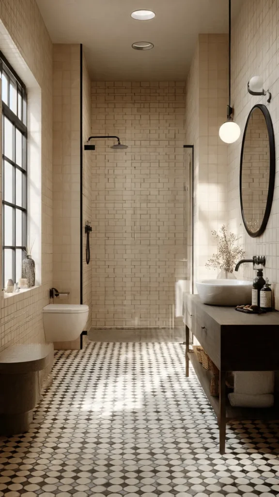 Pro Tip 🧼: Use one standout feature — like a black-framed mirror or a statement pendant light — to add personality without clutter.
