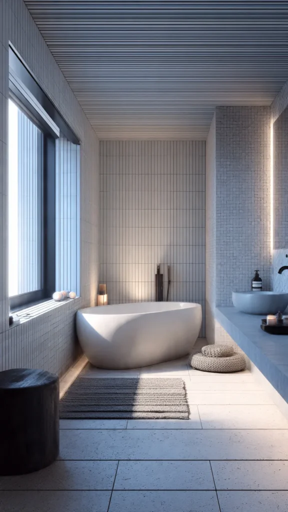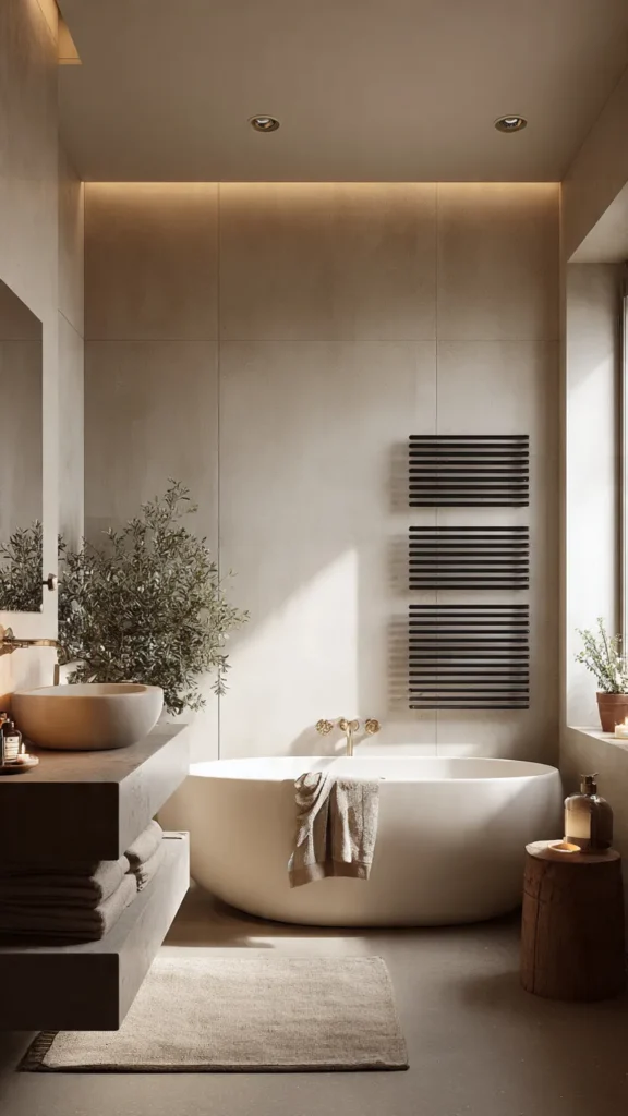 The Scandinavian minimalist bathroom perfectly blends form and function — a balance of warmth, simplicity, and coziness.