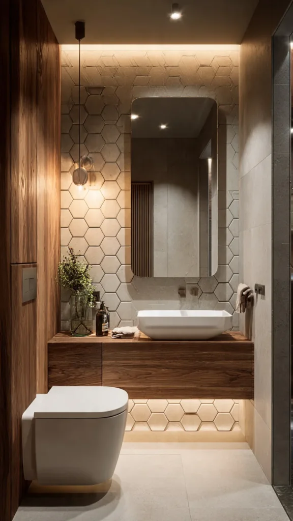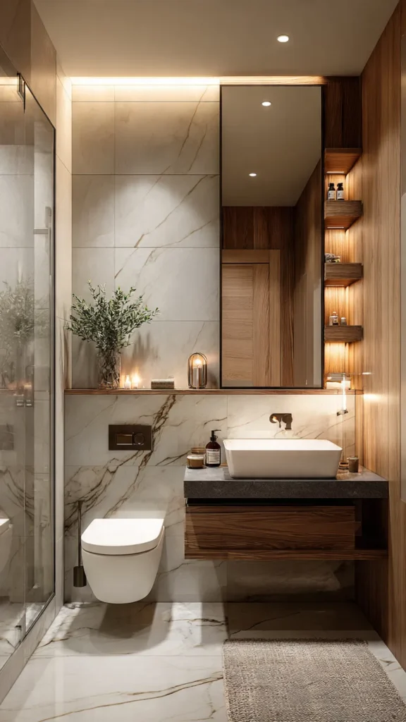 Pro Tip 🪞: Vertical design elements draw the eye upward, making small bathrooms feel taller and more spacious.
