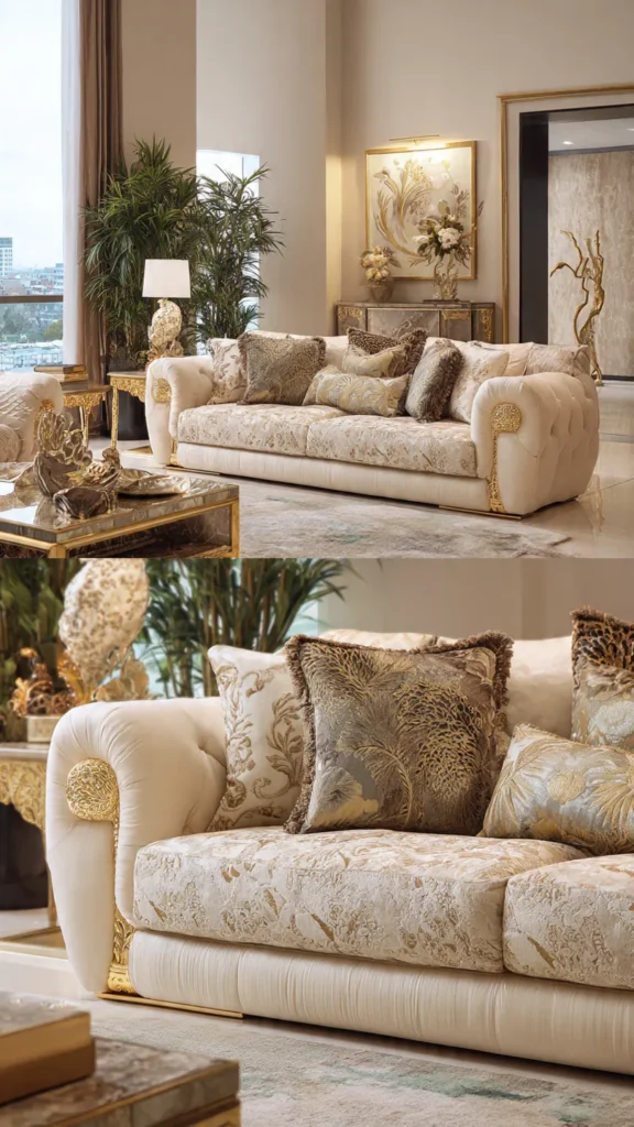 Add layered throw blankets, textured cushions, and statement lighting nearby. Incorporate metallic accents or a stylish rug to enhance the sofa’s presence and create a designer-inspired look.