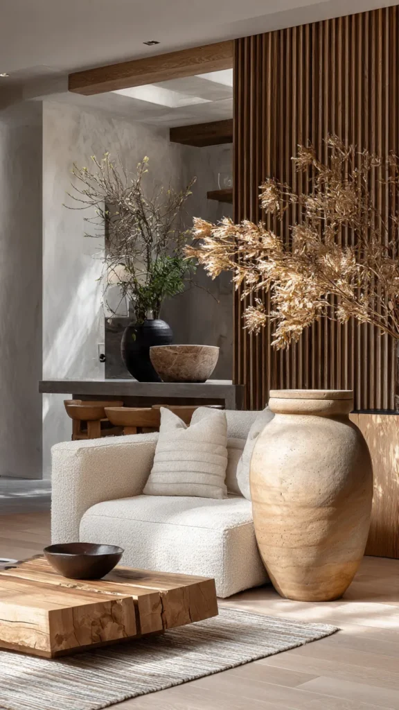 Wood, rattan, bamboo, jute, cotton, linen, clay, and stone are top choices. They instantly add warmth, texture, and authenticity to any room.